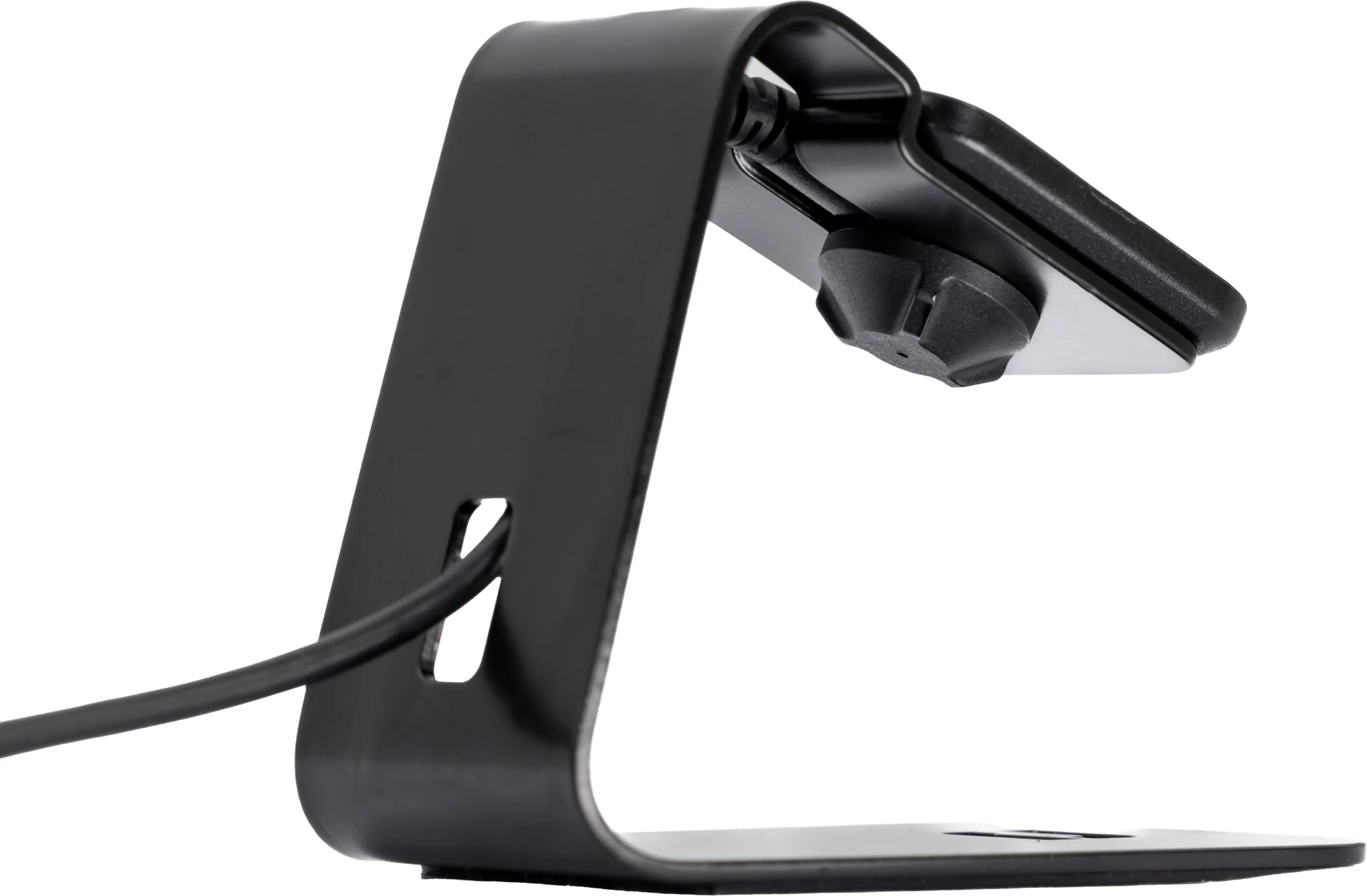 Die X-DOCKe schafft schon beim ersten Kontakt Vertrauen. Das selbsttragende Monoblock-Design aus Metall sorgt für Stabilität, und der durchdachte Neigungswinkel und die rutschfeste Unterseite bieten unübertroffene Standsicherheit, egal ob auf dem Schreibtisch oder bei der mobilen Nutzung. Befestigen, abnehmen, nutzen – ganz einfach, selbst unter den extremsten Bedingungen