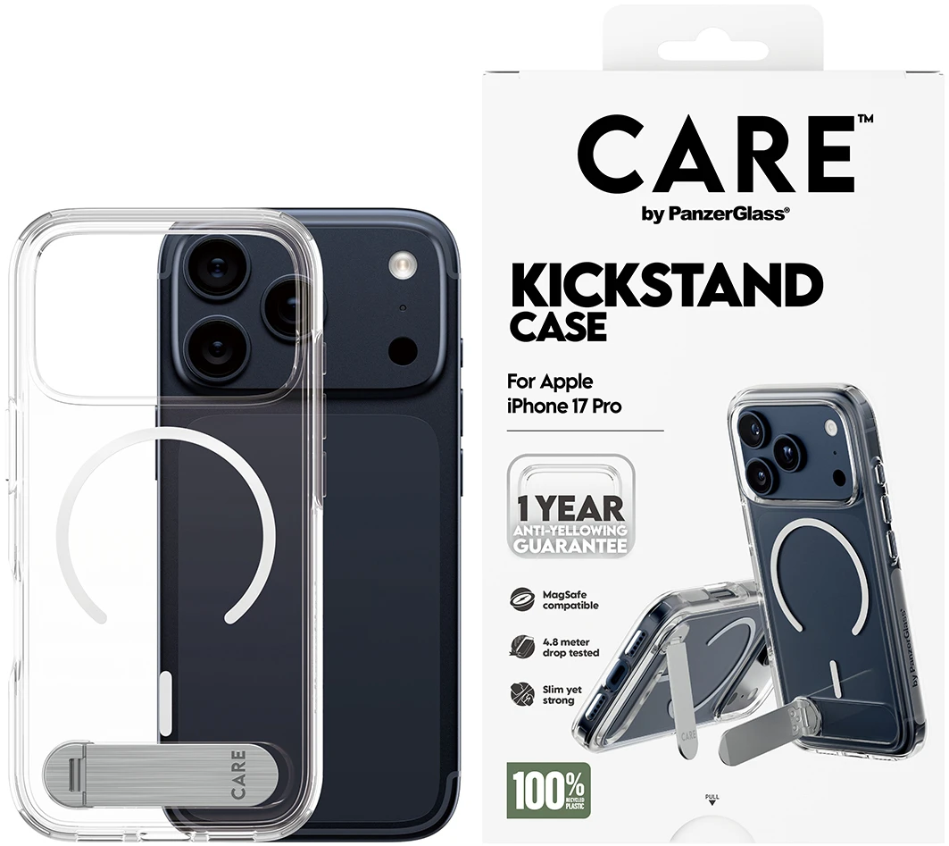 Phänomenaler Schutz. 3,6 Meter Falltest in allen Winkeln und Ecken. Hergestellt aus recyceltem Plastik. MagSafe kompatible und ohne Wenn und Aber: 1 Jahr Anti-Vergilbungs-Garantie.